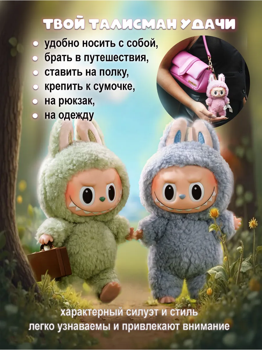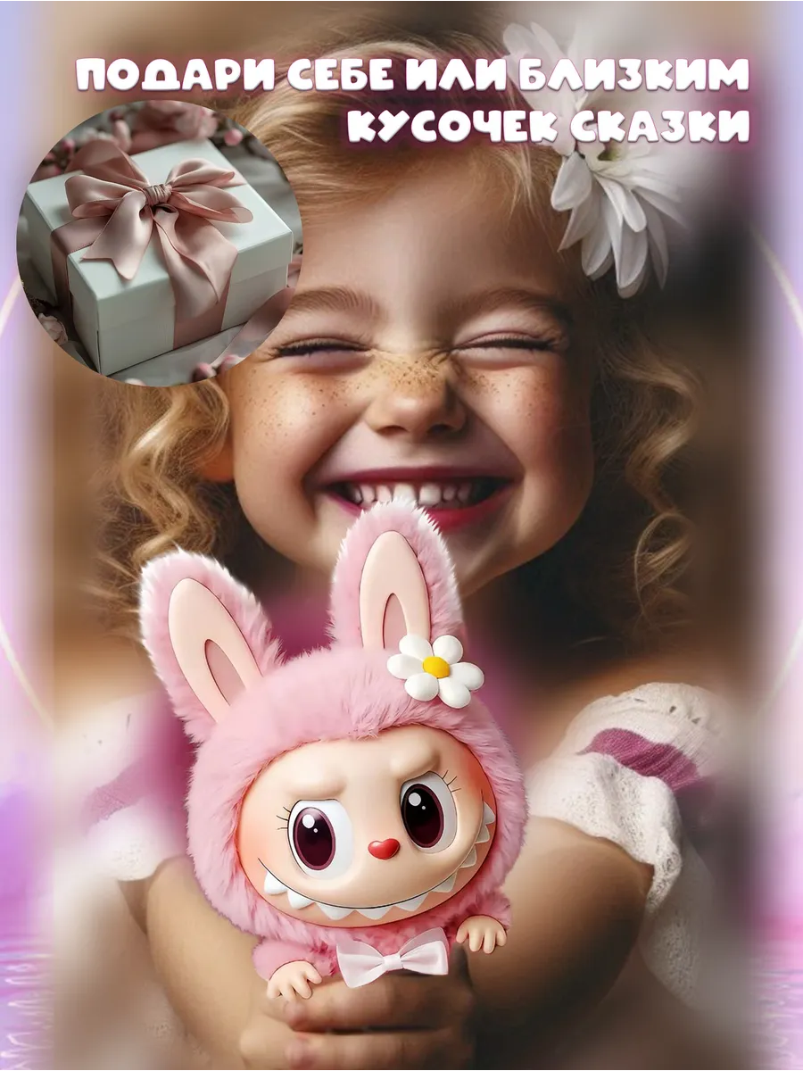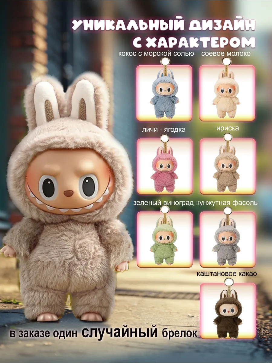 Лабубу - это очаровательный мягкий брелок, который станет милым дополнением к вашим ключам, рюкзаку или сумке. Эта милая игрушка, выполненная из нежного плюша, резины и наполненная синтепухом, принесет радость как детям, так и взрослым. Лабубу - это не просто игрушка, это настоящий тренд! Сюрприз внутри каждой упаковки - вы не знаете, какой именно Лабубу вам достанется, что делает его еще более захватывающим. Мягкий и приятный на ощупь Лабубу станет верным другом и компаньоном в повседневной жизни. Его компактный размер и удобный брелок делают его идеальным спутником для прогулок, путешествий и просто для поднятия настроения. Лабубу - это отличный подарок для любителей милых и необычных вещей.
