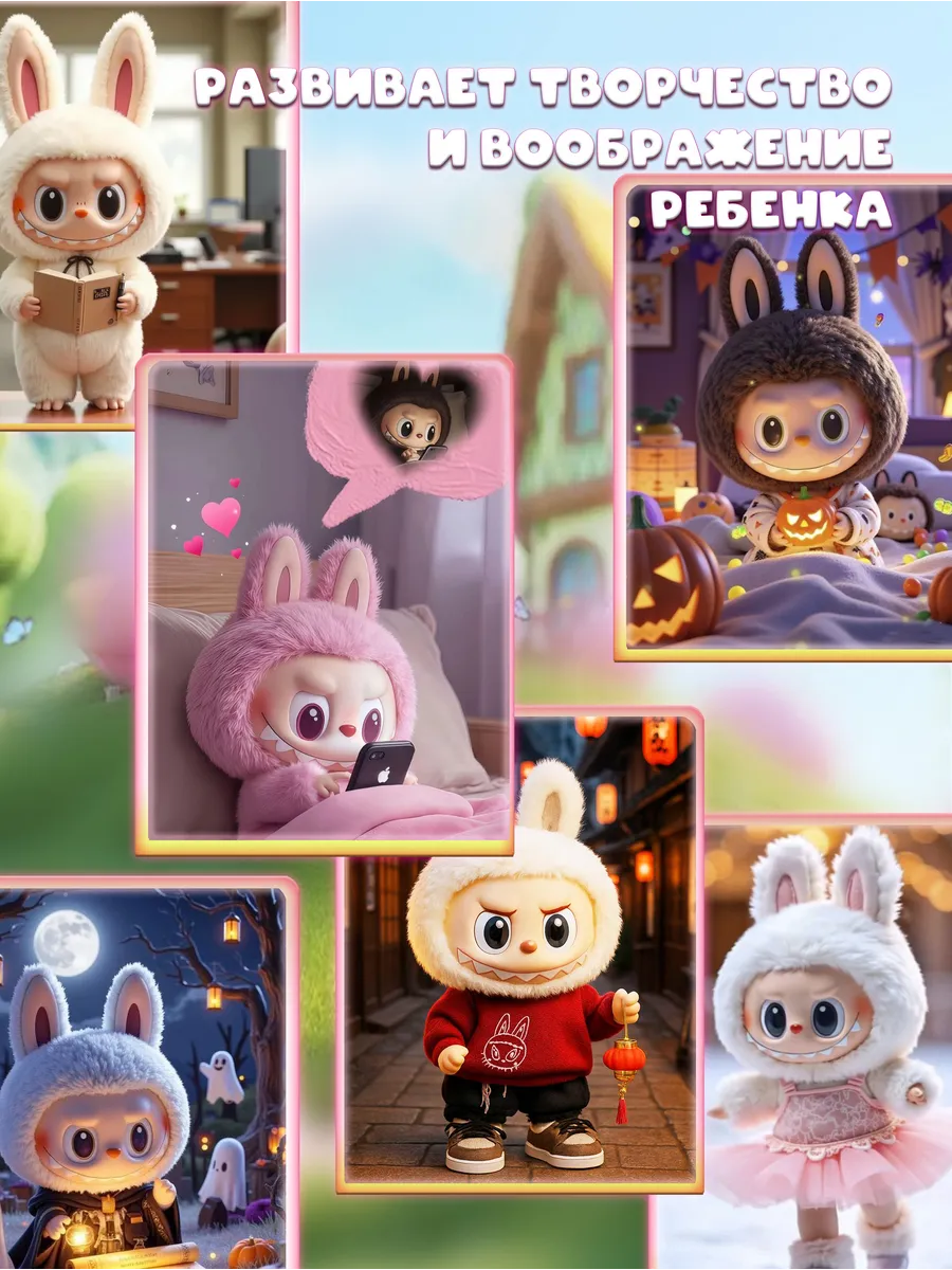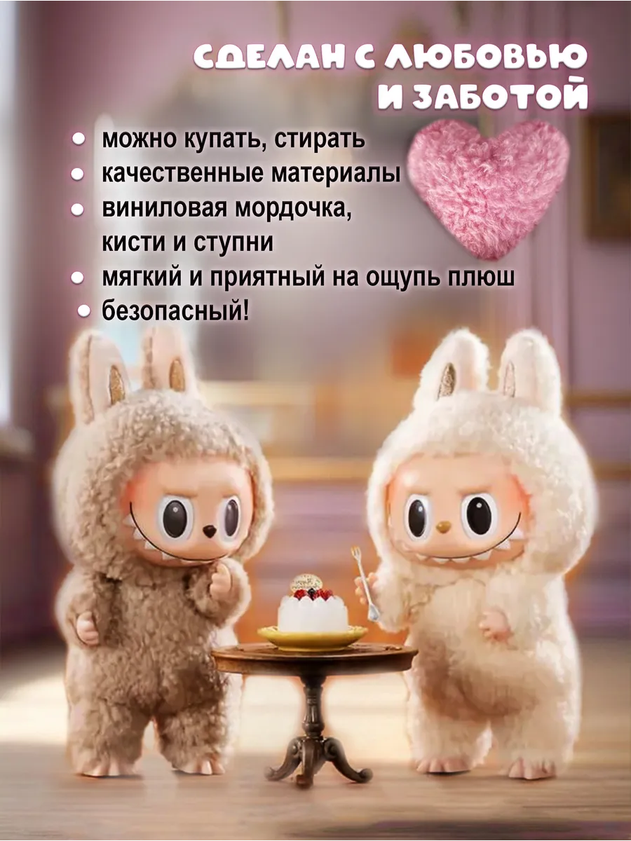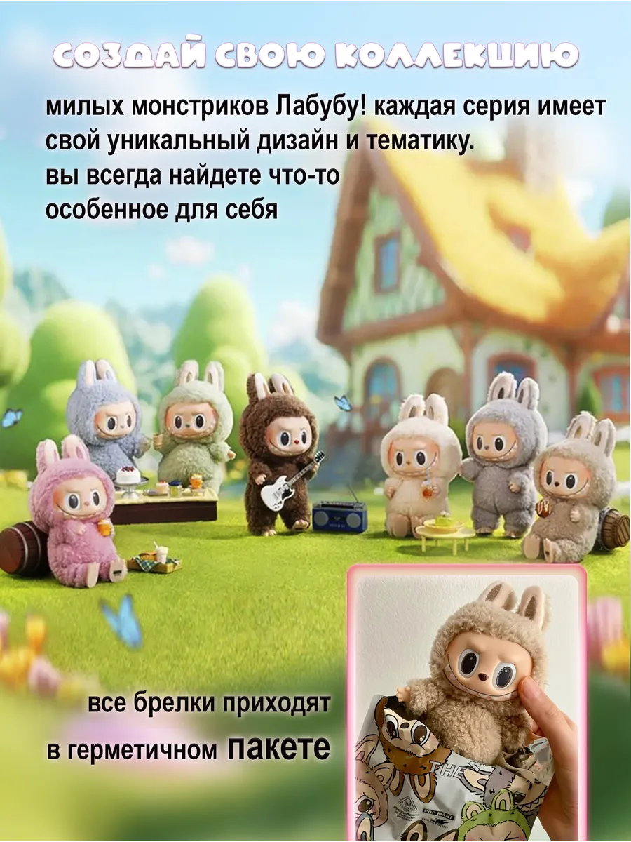 Лабубу - это очаровательный мягкий брелок, который станет милым дополнением к вашим ключам, рюкзаку или сумке. Эта милая игрушка, выполненная из нежного плюша, резины и наполненная синтепухом, принесет радость как детям, так и взрослым. Лабубу - это не просто игрушка, это настоящий тренд! Сюрприз внутри каждой упаковки - вы не знаете, какой именно Лабубу вам достанется, что делает его еще более захватывающим. Мягкий и приятный на ощупь Лабубу станет верным другом и компаньоном в повседневной жизни. Его компактный размер и удобный брелок делают его идеальным спутником для прогулок, путешествий и просто для поднятия настроения. Лабубу - это отличный подарок для любителей милых и необычных вещей.